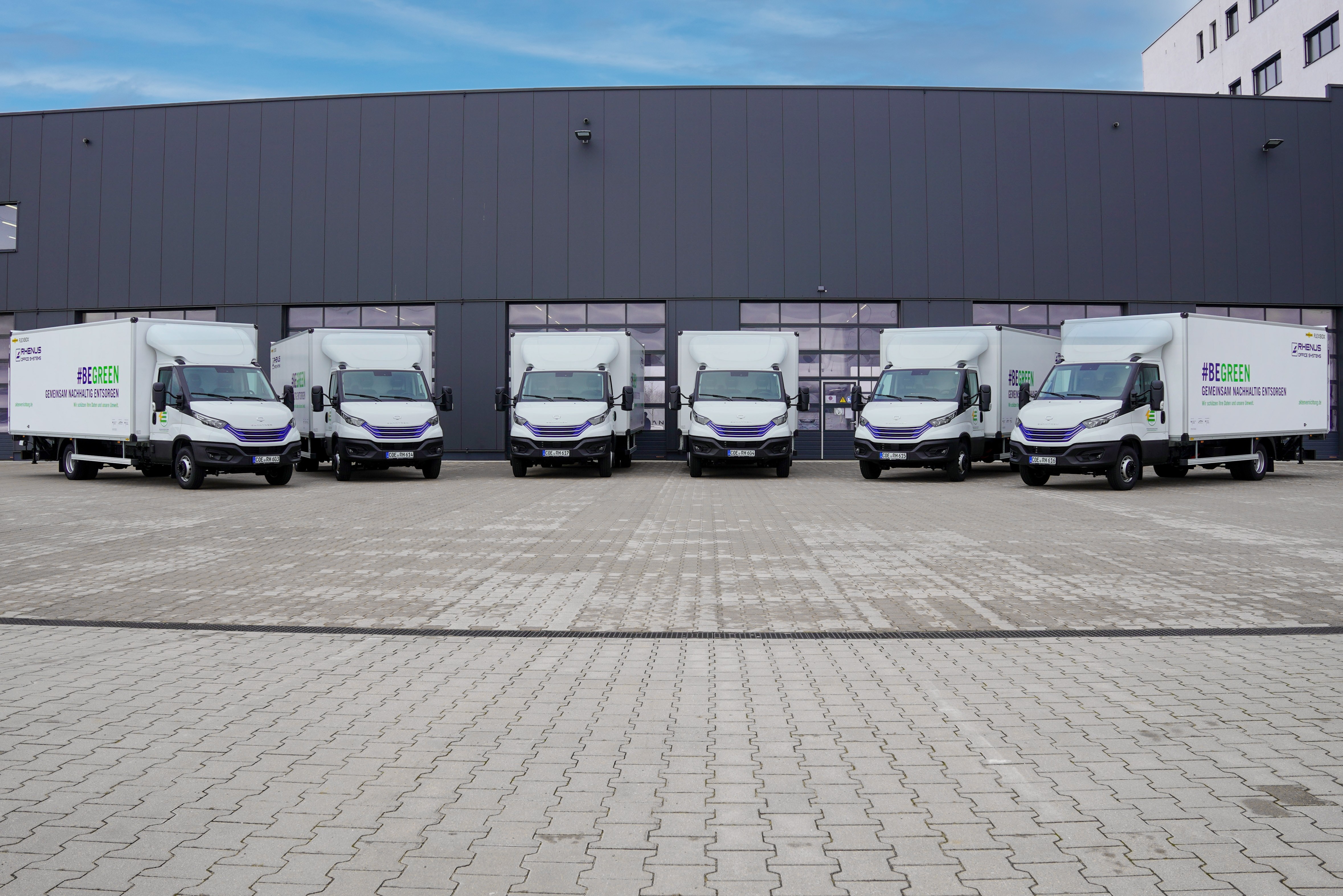 Die E-Lkw wurden von dem Technologieunternehmen Quantron auf Basis von IVECO Daily Plattform entwickelt. Sie zeichnen sich durch eine Reichweite von ca. 200 bis 220 Kilometer aus und haben eine Nutzlast von 2,5 Tonnen. Im Realverbrauch sparen sie im Vergleich zu einem Verbrennermodell mit gleicher Größe und Ladeklasse auf 100 Kilometer bis zu 45 Kilogramm CO₂ ein, abhängig von Beladung und Streckenprofil. Hochgerechnet auf ein Nutzungsjahr bedeutet das laut Hersteller eine Einsparung von ca. 22 Tonnen. Alle Fahrzeuge können sowohl an AC- als auch an DC-Ladestationen versorgt werden und somit mit Gleichstrom als auch Wechselstrom laden. Darüber hinaus verfügen die E-Lkw über den für Rhenus-Dokumenten-Lkw typischen Kofferaufbau mit integrierter Ladeboardwand. Diese kann herauf- und herabgefahren werden, um schwere Lasten ebenerdig auszuladen und den Abladeprozess der teils mehrere 100 Kilogramm schweren Datentonnen zu vereinfachen.